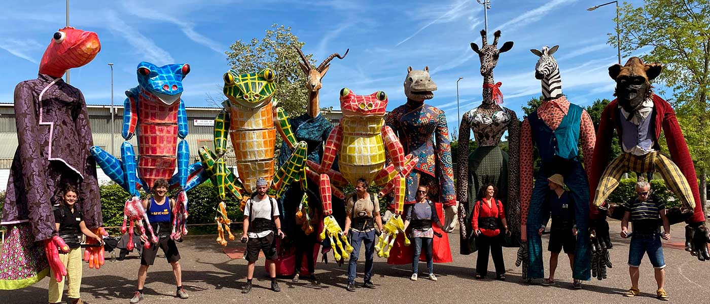 Dans des mises en scène de formes fixes ou déambulatoires, nos marionnettes géantes offrent aux publics une expérience immersive, un acte poétique, un partage d’émotions entre les artistes et la population.